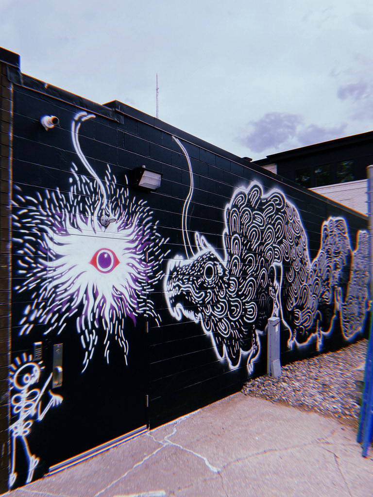 The client was pretty open. They had a large blank wall with difficult access and wanted a monster that made their entrance seem "foreboding". I used rhythm and repetition to create a high-contrast creature that draws attention to their building from the busy interstate next door.